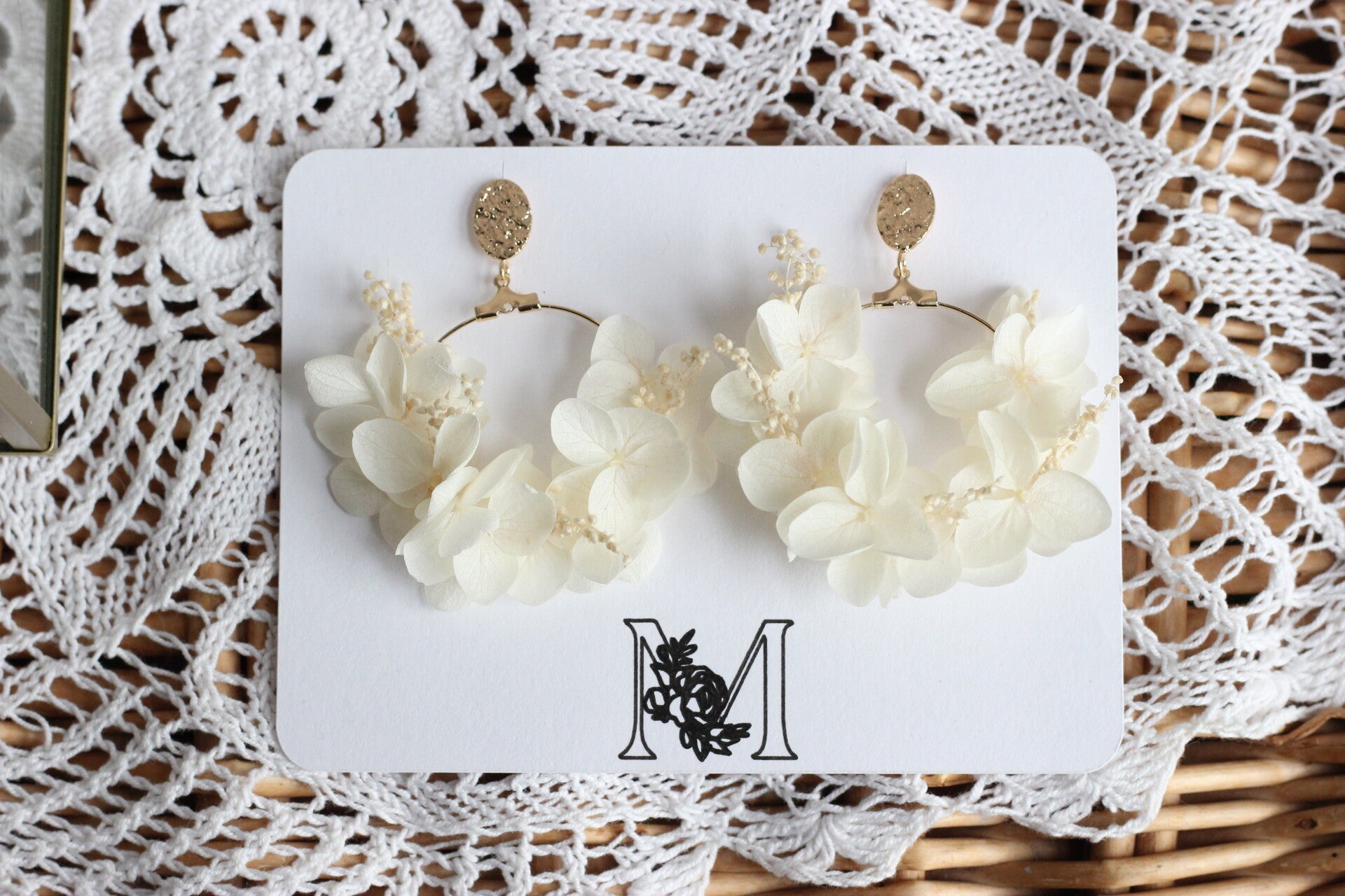 Un Sublime mélange de dentelle et de fleurs d'hortensia blanc cassée et un soupçon de brindille séché.