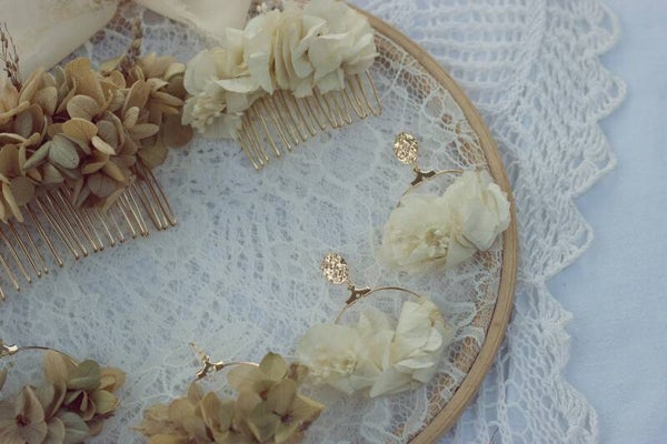 DUO BOUCLE ET PEIGNE HORTENSIA -BEIGE PASTEL-