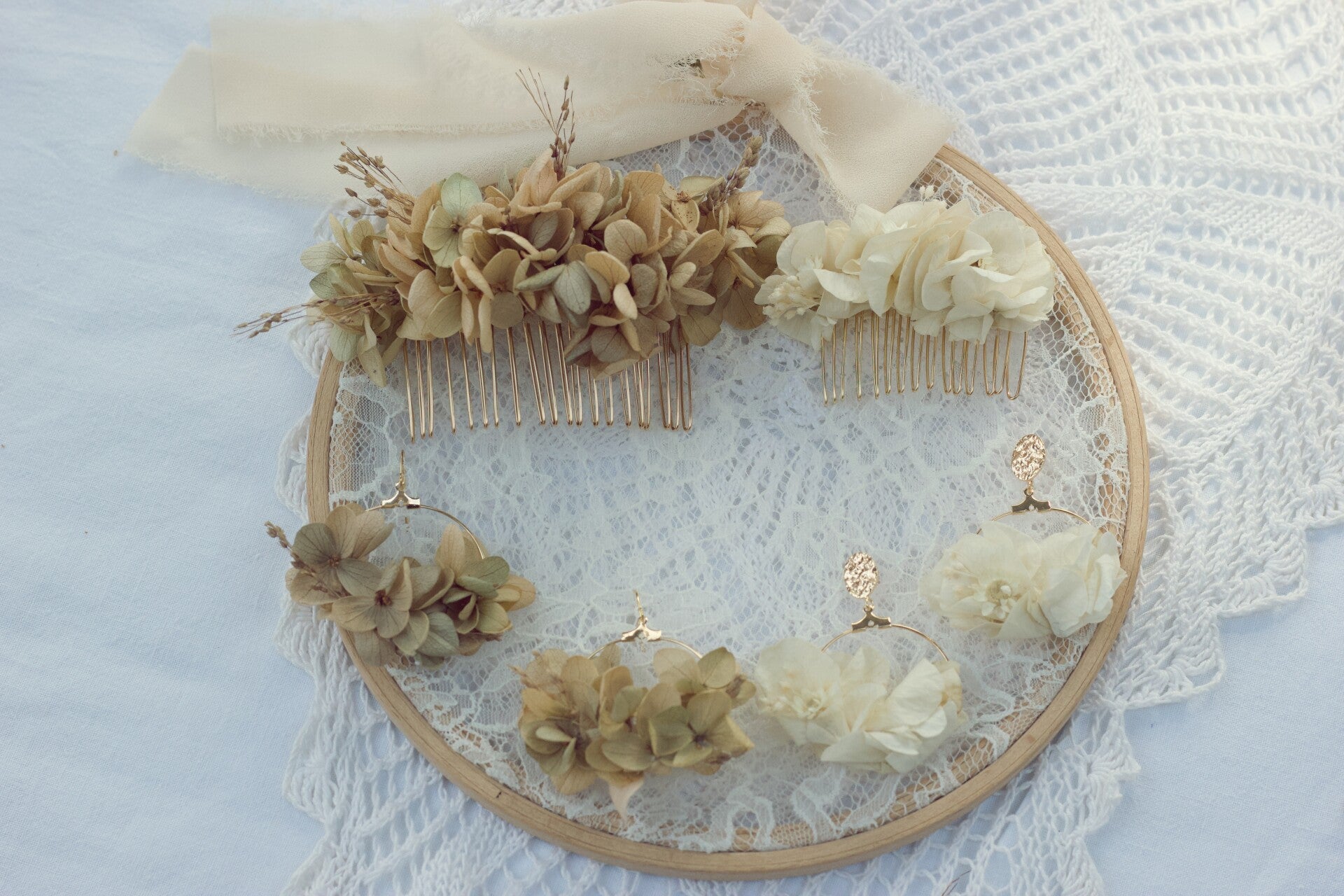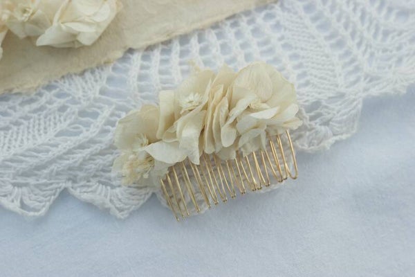 Peigne en métal doré: 6 cm sans fleurs avec 8 cm beau volume.