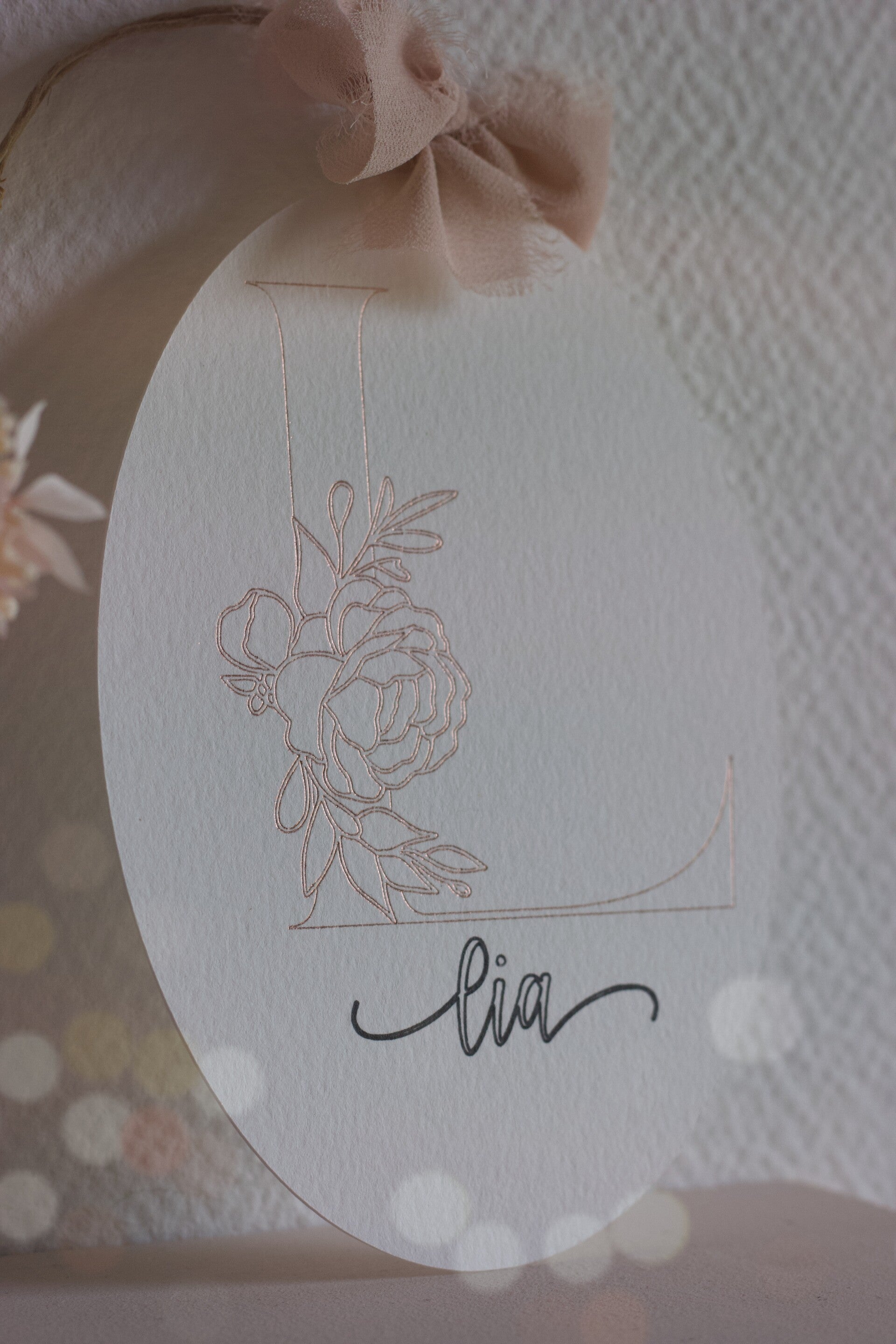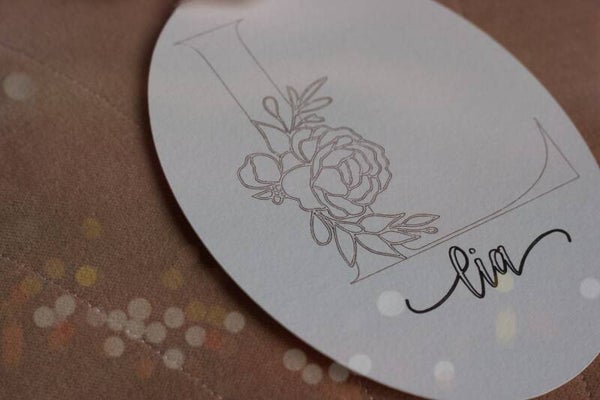 J'adapte la fleur sur chaque lettre, dessin de la fleur réalisé main part mes soins.