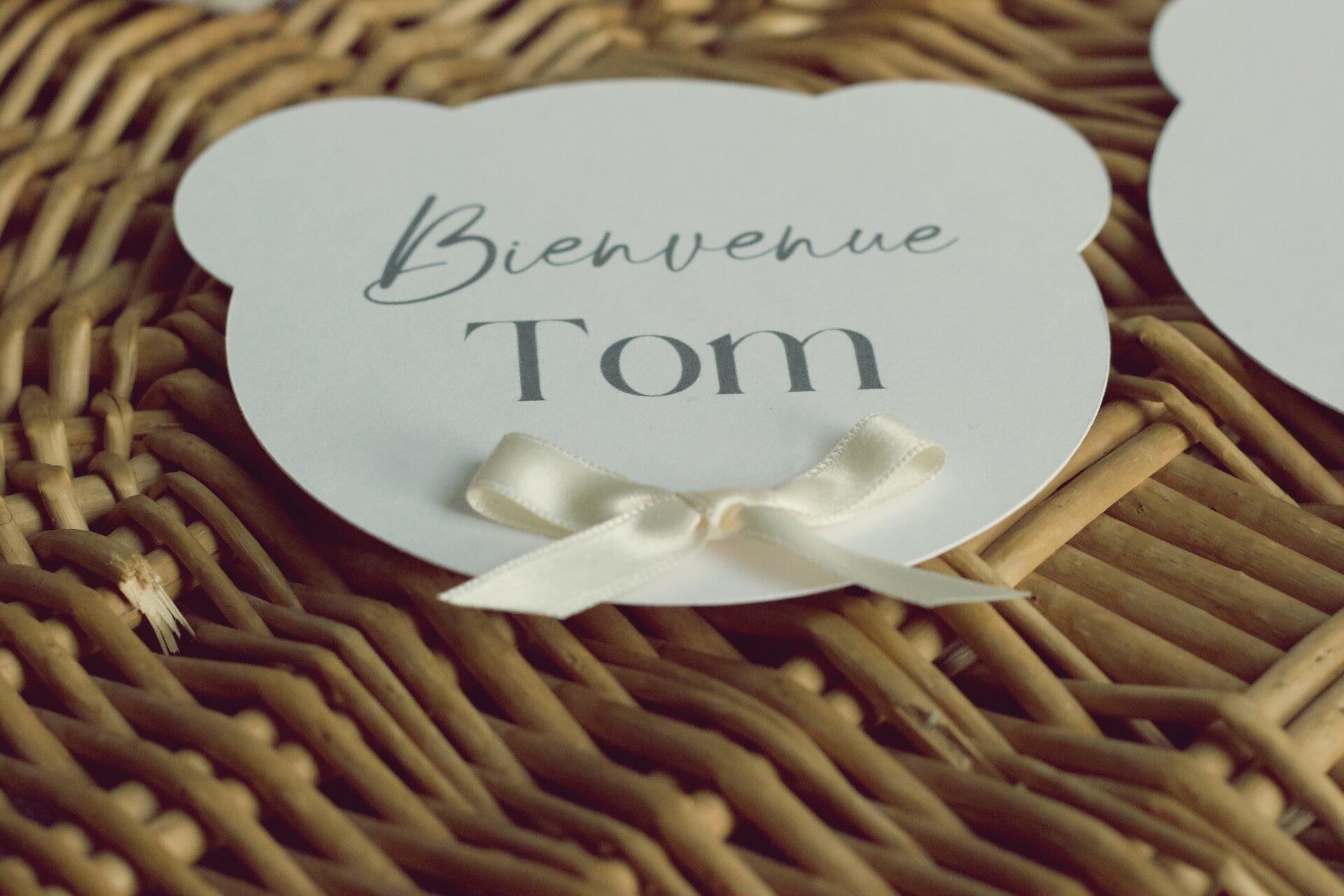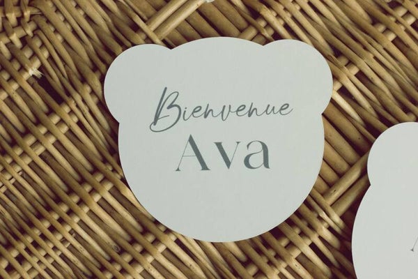 Sublime cartes étapes en papier 300 grammes avec sa carte naissance inclus en forme de tête d'ourson.