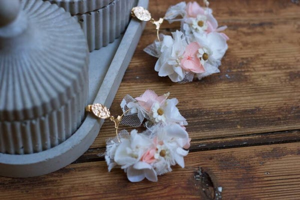 Revêtue d'hortensia blanc et rose pâle est sa dentelle.