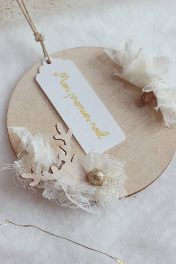 Suspension de Noël personnalisable, petit cerf en bois.