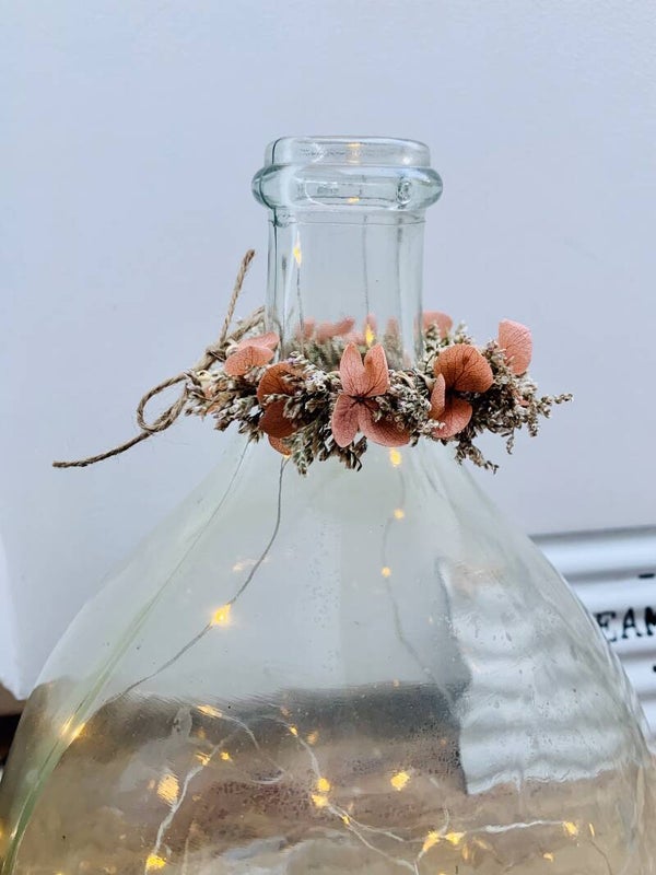 Mini couronne en fleurs séchées, pour décorer vos dames Jeanne ou vos bouteilles décoratives en verre !