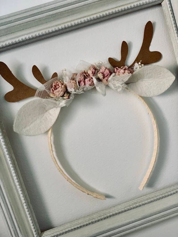 Serre-Tête petit renne et ses fleurs pour petites et grandes filles.